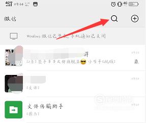 点击消息界面右上角的搜索符号,如下图所示。
