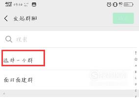 在发起群聊界面点击下面的“选择一个群”,如下图所示。