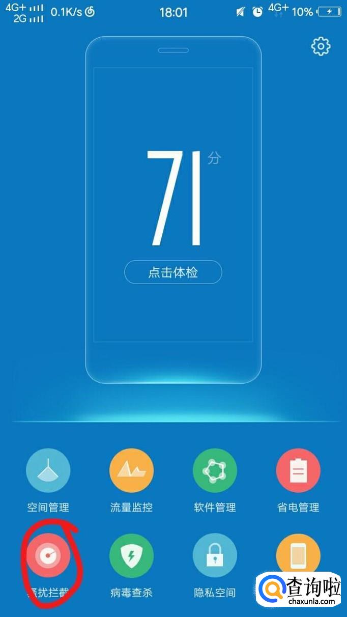 然后,我们点击“骚扰拦截”。