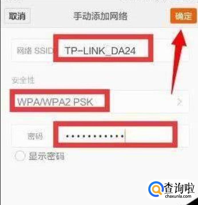 如果加密方式选择好以后,这时候就可以选择密码输入框,然后输入密码,这时候手机就开始尝试连接wifi啦。