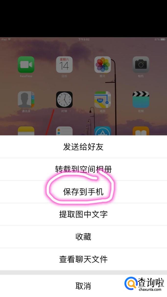 然后,选择你要保存的那张图片,点一下将它放大,之后长按这张图片,再点击“保存到手机”。