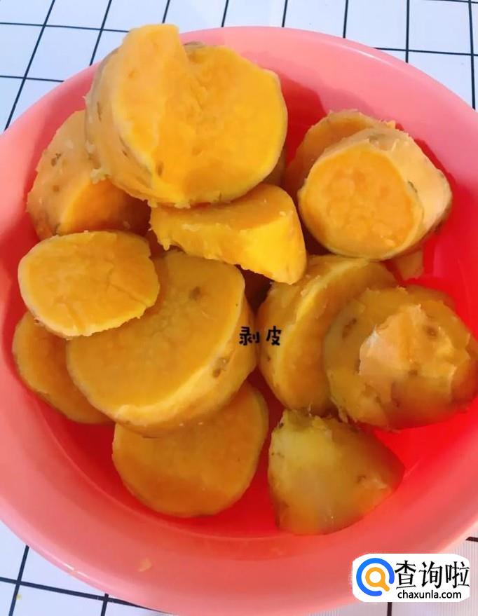 接着将地瓜拨皮,如图所示。
