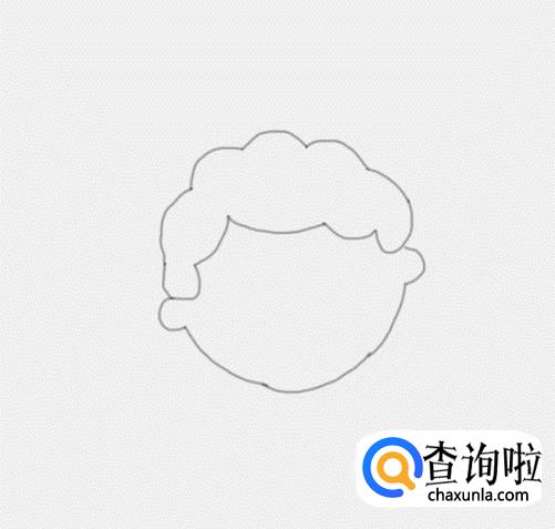 在头发的基础上我们再画出小男孩的面部,然后再在面部上画出小男孩的两只耳朵,如图所示: