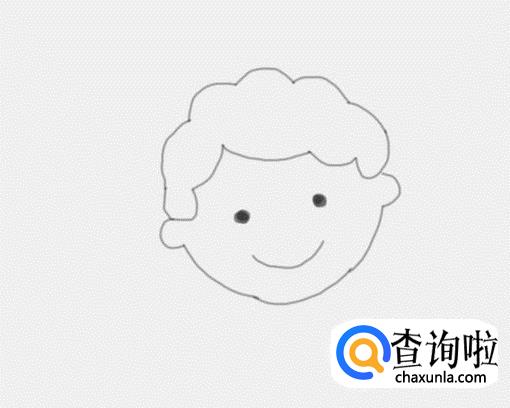 在小男孩的面部上面我们再画出小男孩的两只眼睛和嘴巴,如图所示: