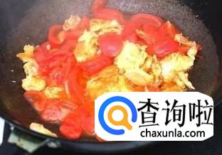 锅中倒油,油热后打入两个鸡蛋,等鸡蛋熟后加入西红柿翻炒。