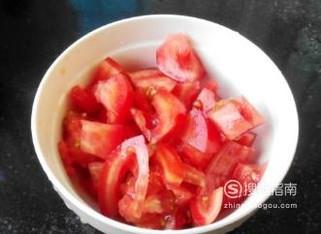 找将西红柿洗净切块备用,不喜欢吃皮的人可以用开水烫一下皮,扒了皮再切块。