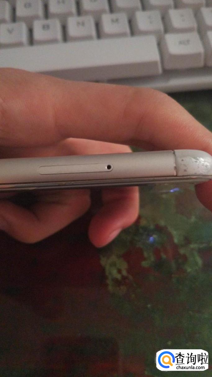 找到手机的左侧有一个卡槽,卡槽旁边有一个小孔。