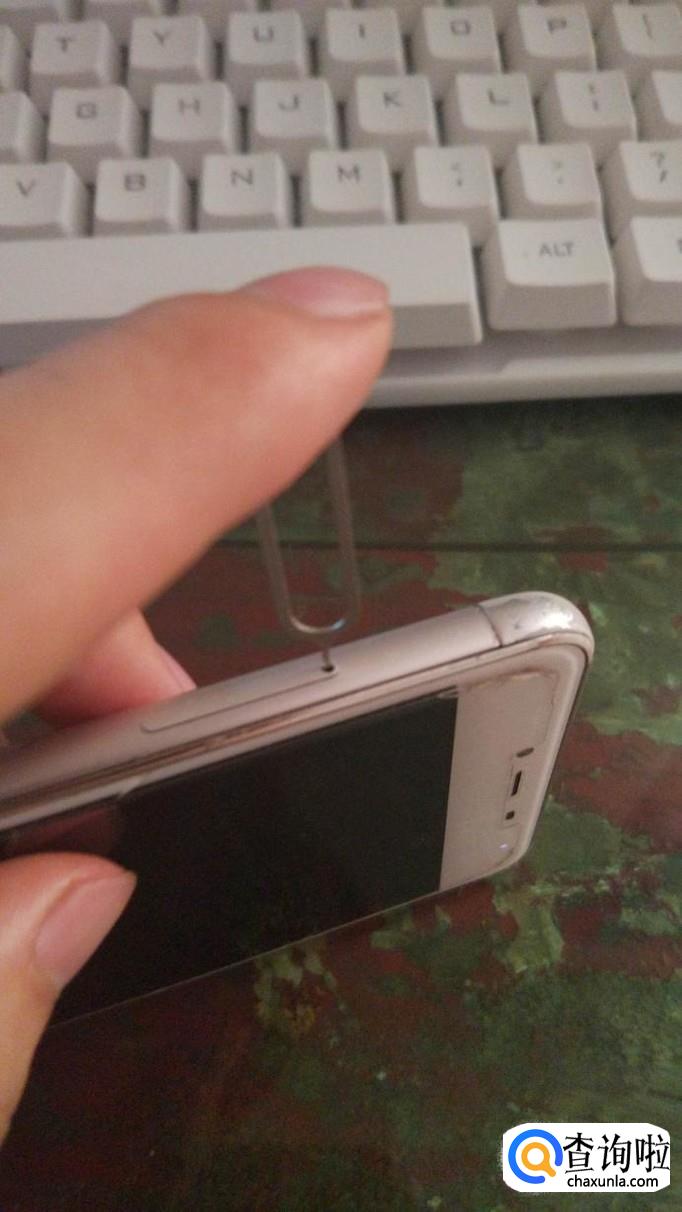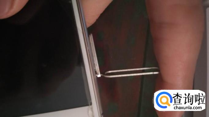 使用取卡针的尖端对准小孔,用力按压下去,使卡槽弹出来。