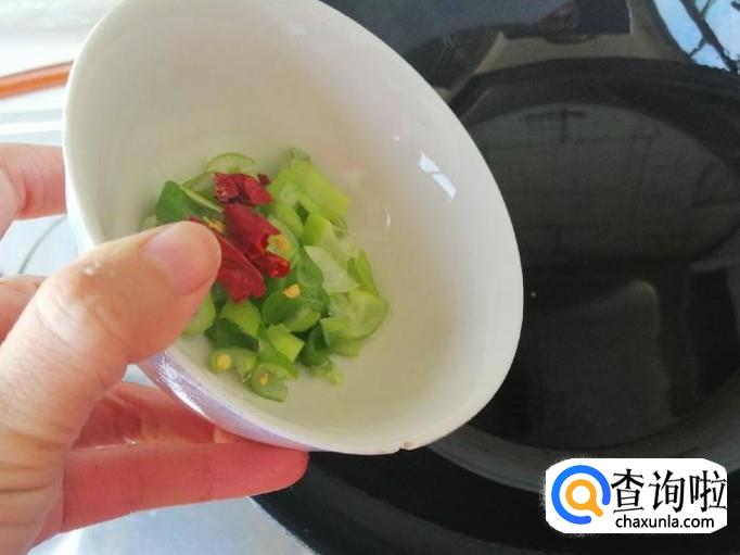 取适量大葱用水洗净,切成葱末待用 干红辣椒适量洗净切好待用,能吃辣椒的可以多放些辣椒,吃起来更会好吃,我这里放的少,家里有不能吃辣椒的,放少点提个味就行。