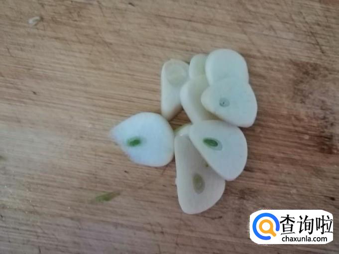 适量蒜剥皮洗净切片待用,家里蒜不多了,我就用了两瓣蒜,喜欢蒜香味浓的就多准备些蒜。