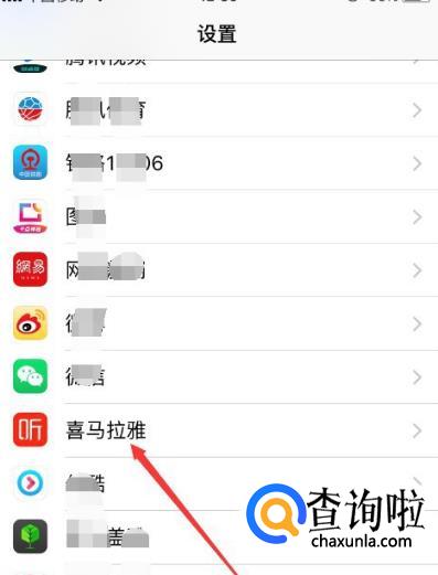 进入设置后,下滑页面,找到喜马拉雅app,点击进入