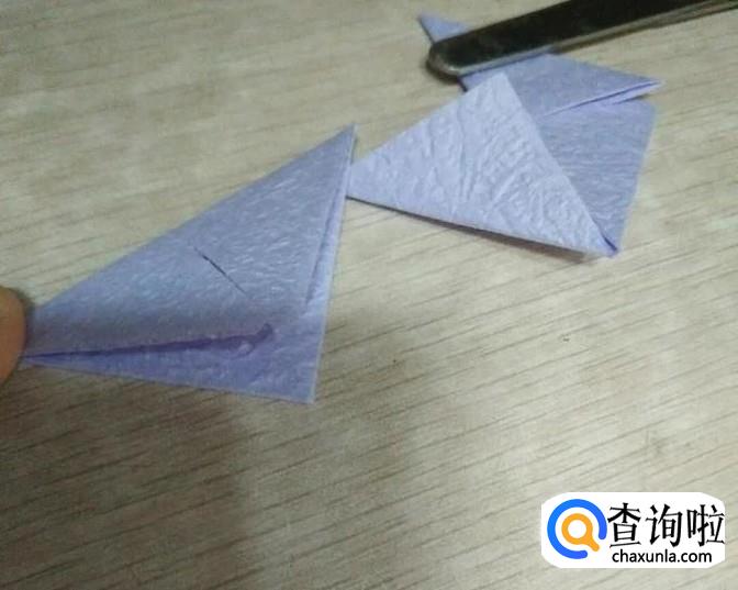 将左边的两个小三角折向右边的大三角。