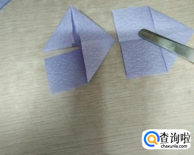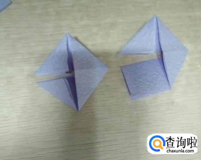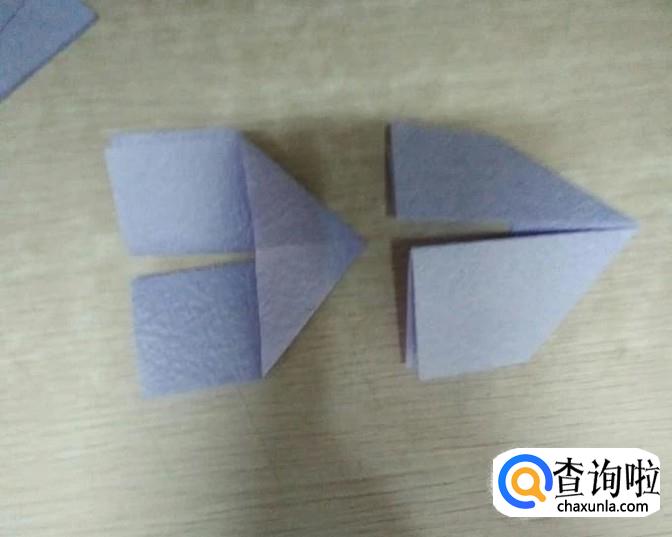 把对折后的纸再对折,如图右,图左为上一步骤折的。