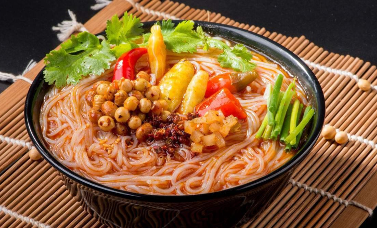 酸辣粉起源于四川,是四川省、重庆市、贵州省等地的传统特色小吃,属于渝菜、川菜、贵州小吃。其特点是麻、辣、鲜、香、酸且油而不腻。 酸辣粉主粉由红薯,红苕,豌豆按比例调和,然后由农家用传统手工漏制而成。酸辣粉源于西南民间,取食材至当地手工制作的红薯粉,味以突出酸辣为主而得名。