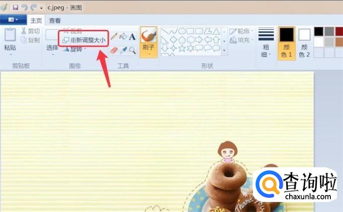 用画图打开这张图片,并点击菜单栏上的‘重新调整大小’按钮