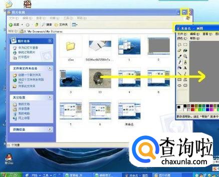 然后将要压缩的图片拖入画图窗口(黄色箭头所示)。
