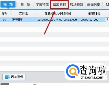 然后点击叠加素材,可以给这段视频添加上我们想要的边框等。