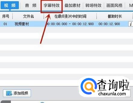 接着点击字幕特效,可以给这段视频添加上我们想要的字幕。