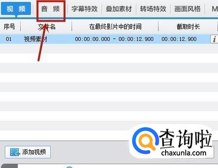 然后点击音频可以给这段视频添加上我们想要的背景音乐。