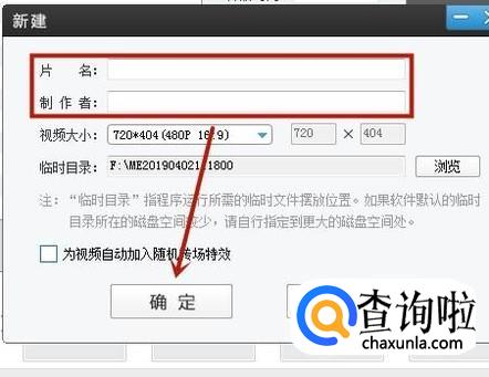 然后输入片名和制作者并点击确定。
