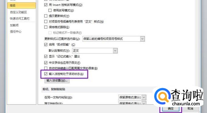我们点击勾选上输入法控制处于活动状态,然后点击确定,之后重启Word就可以输出汉字了。