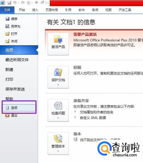 首先,点击打开office2010 Word,然后点击左上角的文件,如图所示;