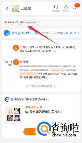 然后在快递信息界面中就能看到我们的【快递单号】了。