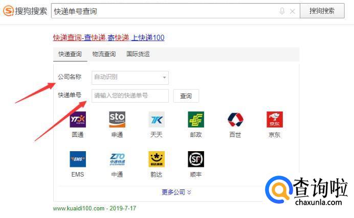 接着在搜狗搜索中输入【快递查询】,在下方的搜索选项中直接输入刚才的快递单号也可以查询核对一下信息。