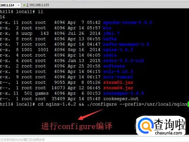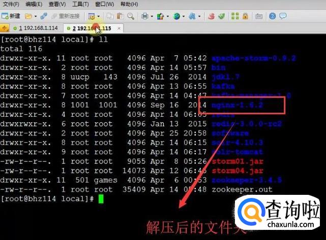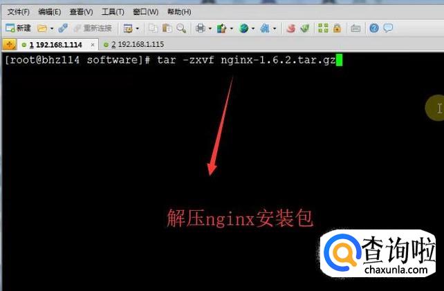 然后我们将nginx的安装包进行解压,如下图所示,tar解压这里搭配zxvf参数