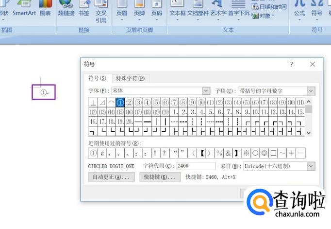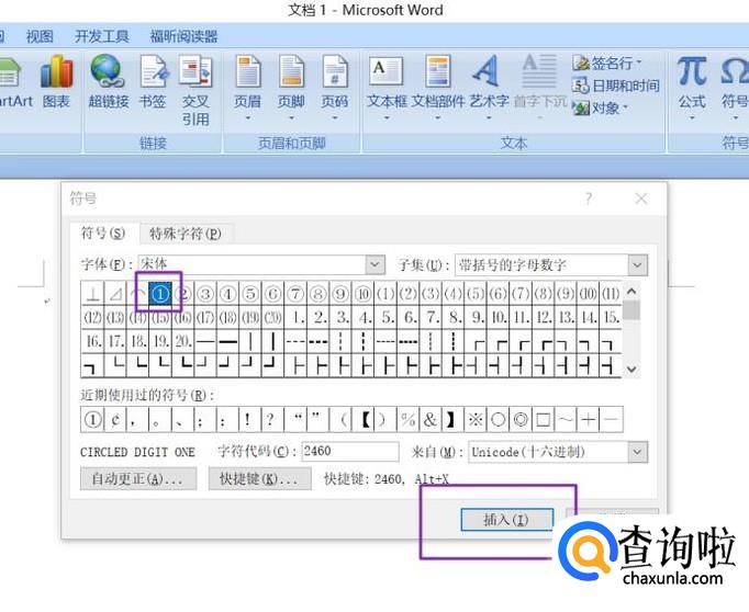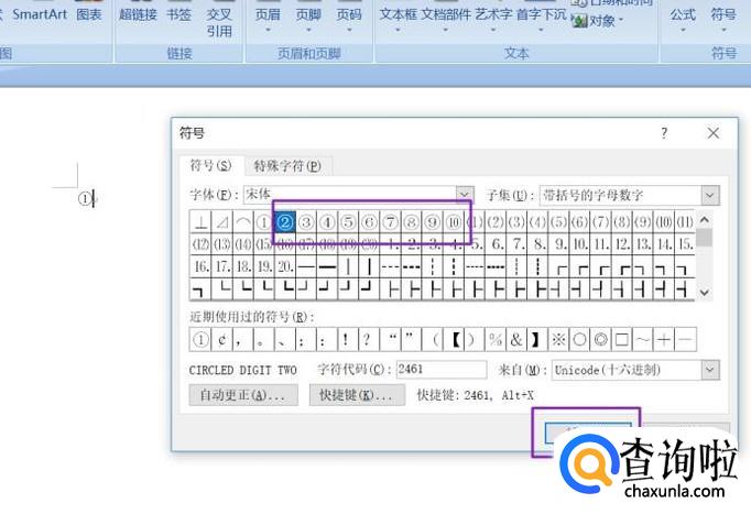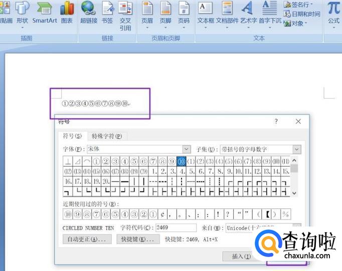 弹出的界面,我们看到带圈的数字1到10了,我们点击1,然后点击插入;