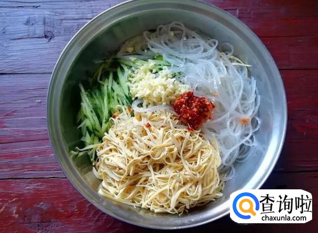 黄瓜,粉丝,豆皮,大蒜,辣椒油,香油,醋,白糖