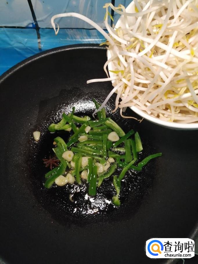 豆芽适量,枸杞子适量,小葱适量,蒜适量,青椒适量,盐适量,白醋适量,白砂糖适量。