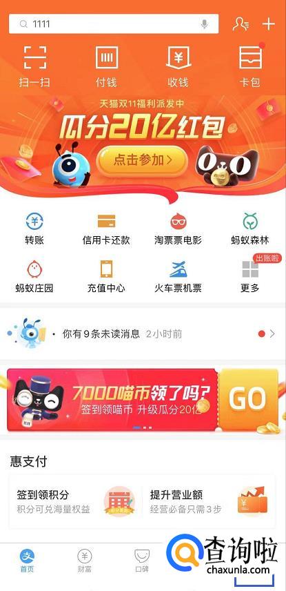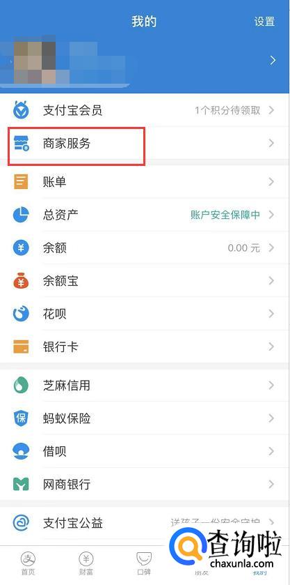 或者在支付宝主页点击右下角的“我的”,然后点击“商家服务”。