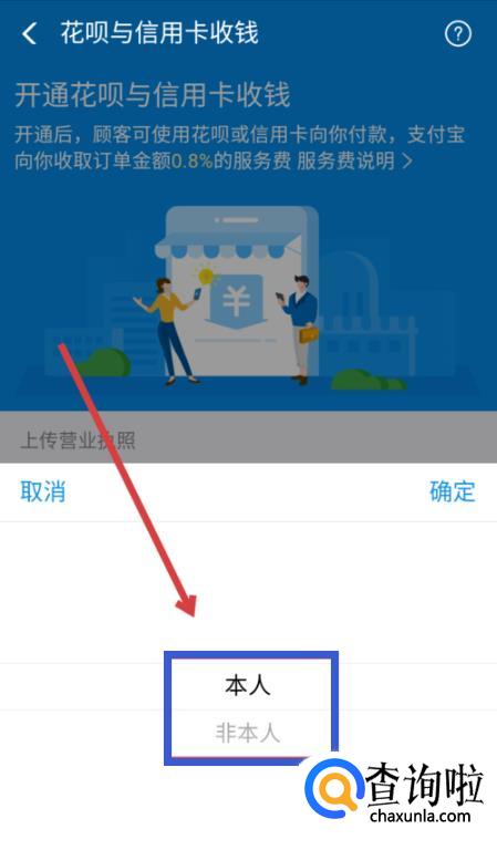 然后选择营业执照的持有人,可以是你自己本人,也可以是非本人的。