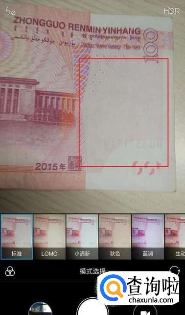 打开MIUI系统中的相机应用,拍摄一下人民币背面的图片。
