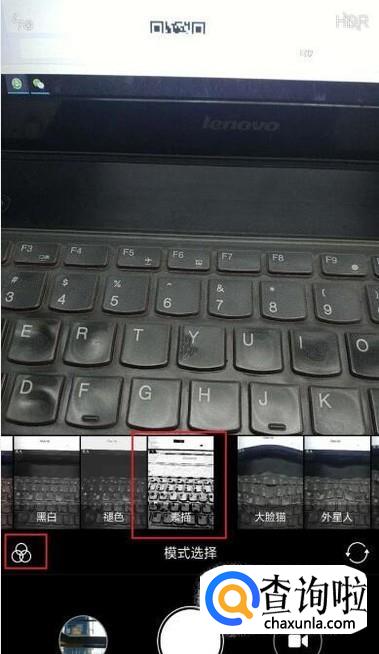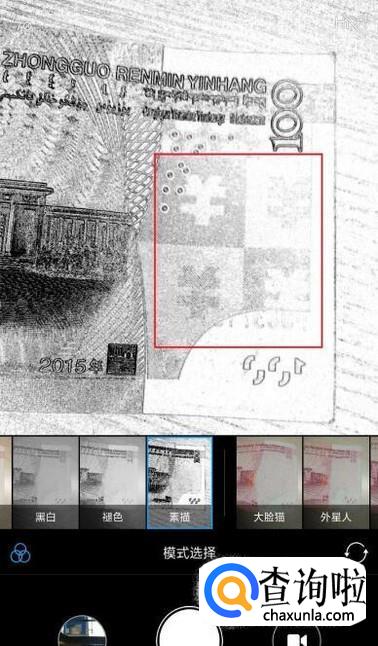 然后我们点击相机页面中的“模式选择”按钮,将相机模式调整为“素描”状态。