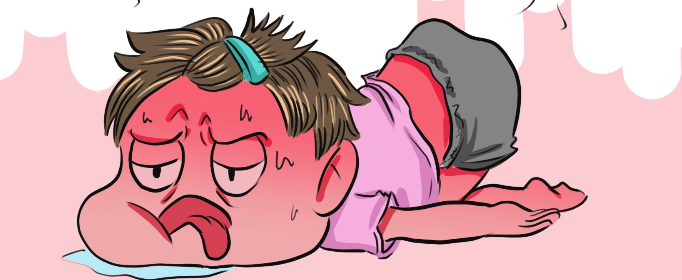 夏季气温高、湿润程度大,身体出汗多,不容易蒸发,汗液浸渍皮面角质层,导致汗腺导管口闭塞,汗腺导管内汗液储留后,因内压增高而发生破裂,汗液渗入周围组织导致刺激,汗孔处发生疱疹和丘疹,形成痱子。