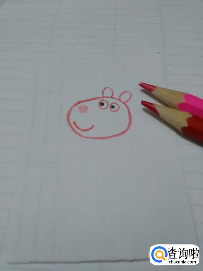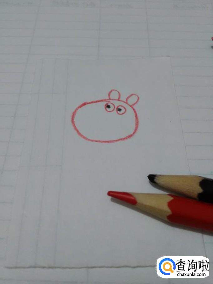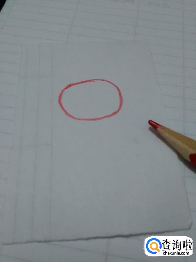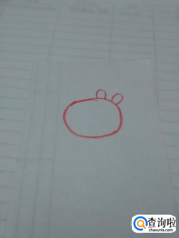 先用红笔在纸上画一个椭圆形,表示小羊苏西的头。