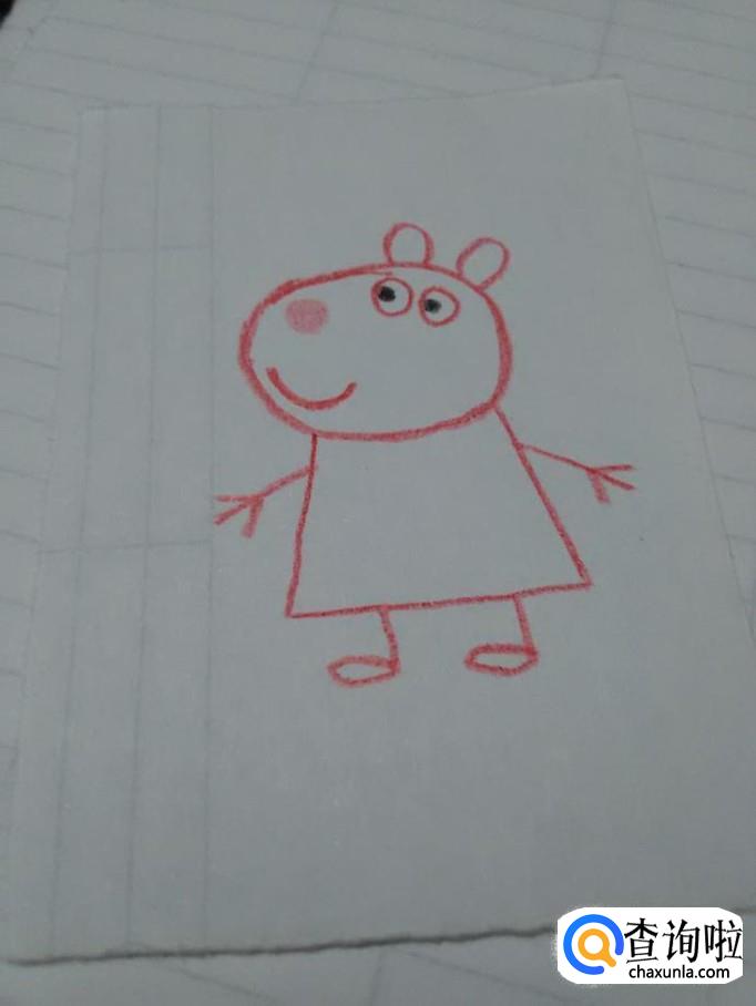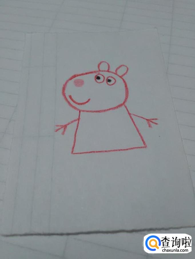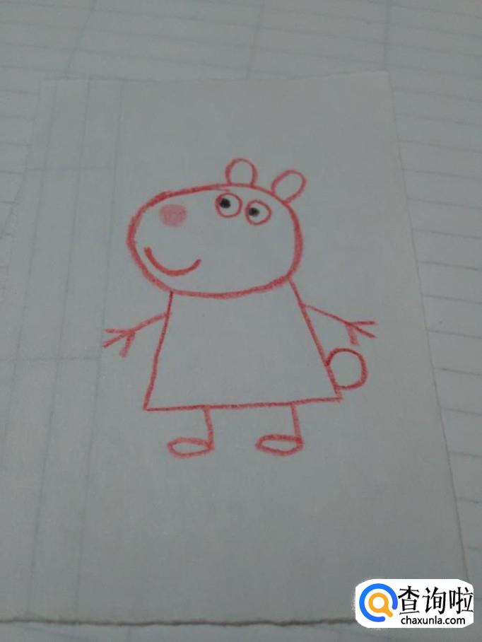在身体的两侧,用红笔画两个长长的小字,表示小羊苏西的胳膊和手。
