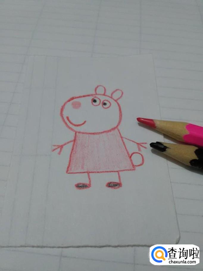最后用红笔图它的裙子,用黑笔涂它的鞋,小羊苏西就画完了。