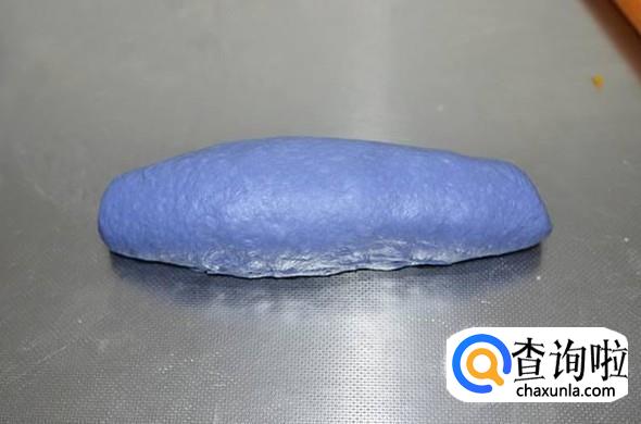 干蝶豆花15g、高筋面粉300g、干酵母3g、黄油25g、糖粉30g、盐15g、葡萄干适量