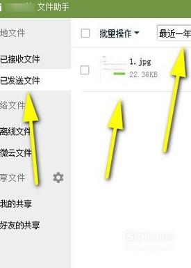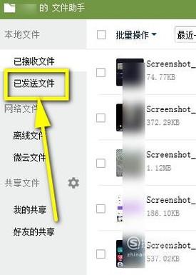 调出了文件助手的操作界面;我们看左侧的功能导航,再点“已发送文件”