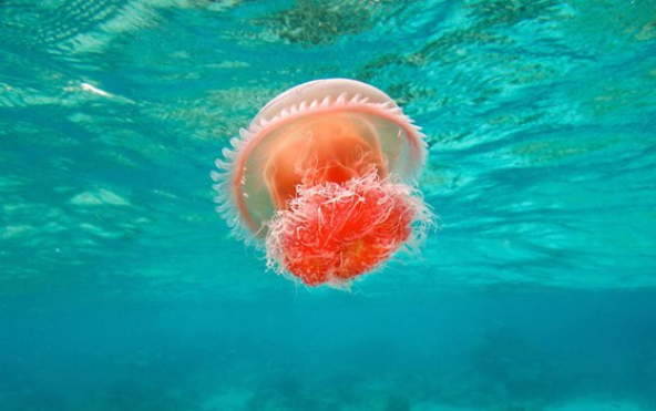 水母为什么能预知风暴的来临呢?科学家经过多年的观察与研究,发现水母有一套构造特殊的听觉器官。水母触手中间的细柄上有个小球,里面有粒小小的"听石",仿佛是水母的"耳朵"。