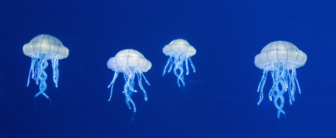 科学家模仿水母的感受器,设计了风暴预报仪,一般可以提前十几个小时做出风暴预报,从而保证了海上航行的安全。