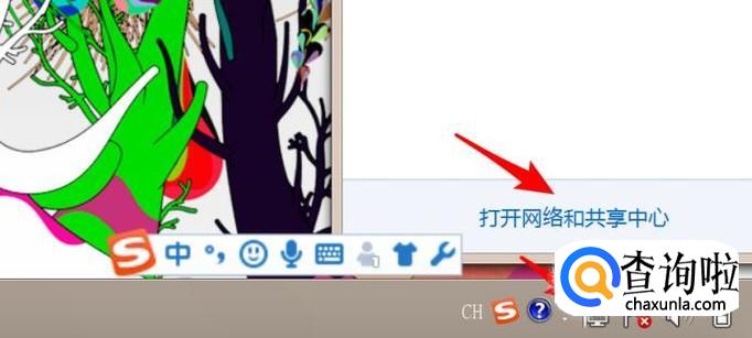 点击任务栏上的网络图标,并点击‘打开网络和共享中心’