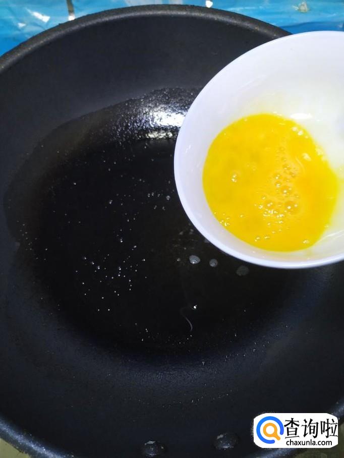 碗中打入一个鸡蛋,加入适量食盐打散,炒锅中放入适量油,油热后将鸡蛋液倒入锅中炒熟。