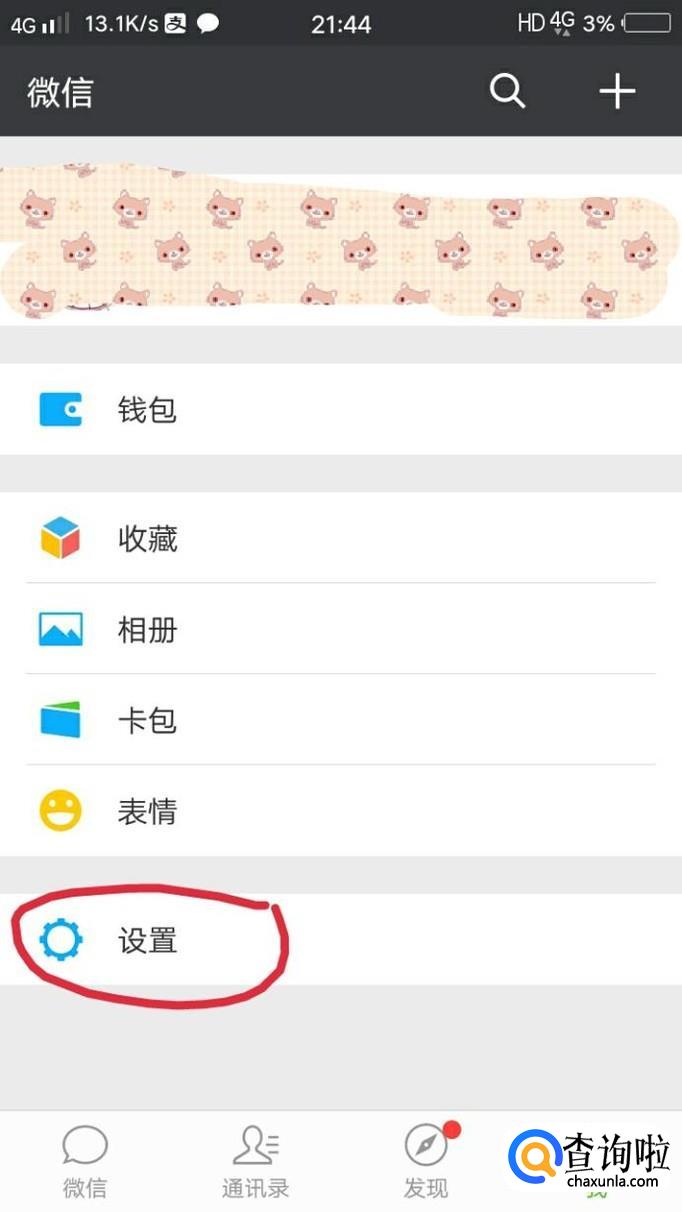 首先打开微信,然后点击如图所示的设置界面,点击进去。
