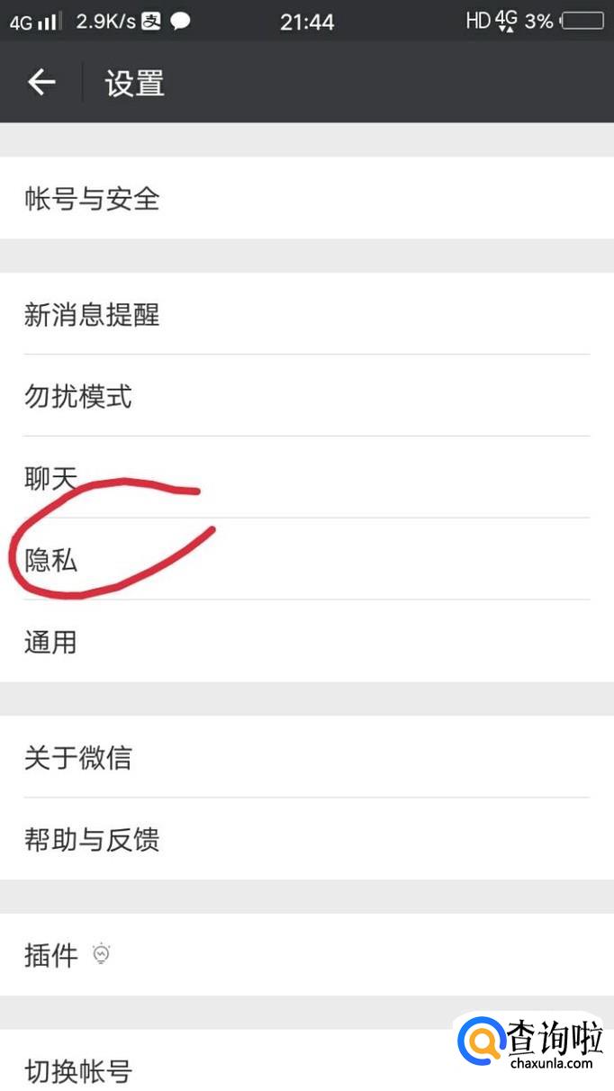 然后会跳转出如下图所示的界面,点击隐私。