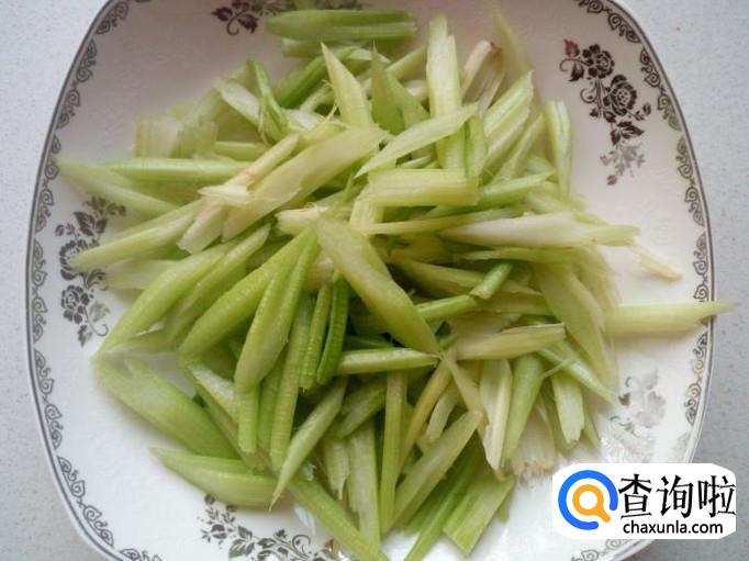 芹菜收拾清洗干净,控干水分,切成寸段。