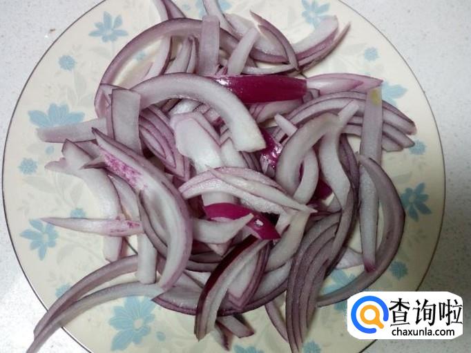 圆葱去皮,用水清洗干净,控干水分,切成丝。